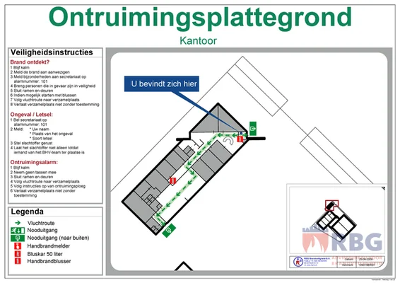 Daarnaast vindt men vaak een overzichtsplattegrond van het gebouw met daarop de nooduitgangen, verzamelplaatsen, de locaties van brandblussers en andere relevante zaken. Deze visuele weergave is essentieel om snel te kunnen zien waar de vluchtroutes zich bevinden en waar eventuele obstakels of bijzonder risicovolle plekken zijn.